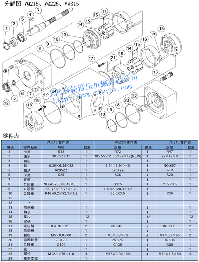 高壓雙聯(lián)定量葉片泵VQ215,VQ225,VQ315分解圖下載