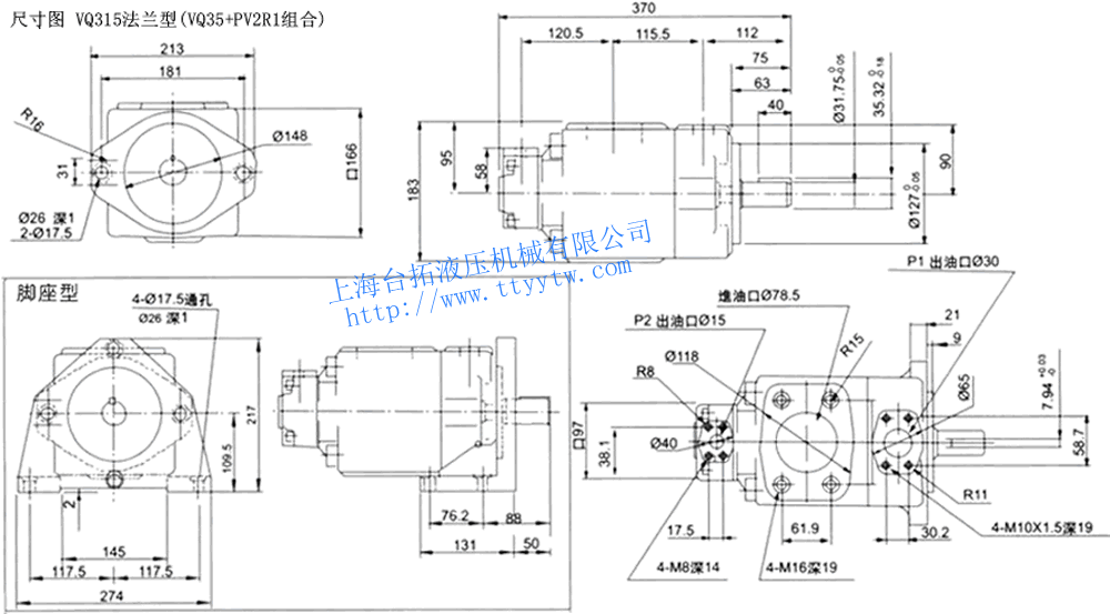 高壓雙聯(lián)定量葉片泵VQ215(VQ25+PV2R1組合)尺寸圖下載 高壓雙聯(lián)定量葉片泵VQ315法蘭型(VQ35+PV2R1組合)尺寸圖下載