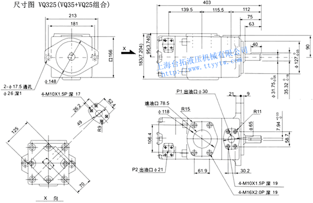 高壓雙聯(lián)定量葉片泵VQ425(VQ45+VQ25組合)尺寸圖下載