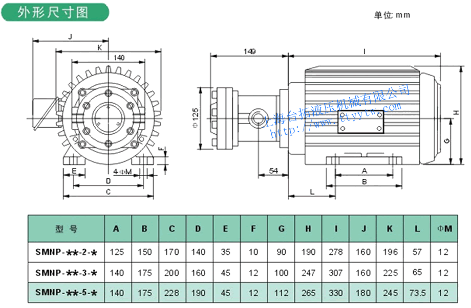 無記號:標準液壓油注:定量泵排量及壓力見泵部分。 直接式電機附定量葉片泵SMNP規格表