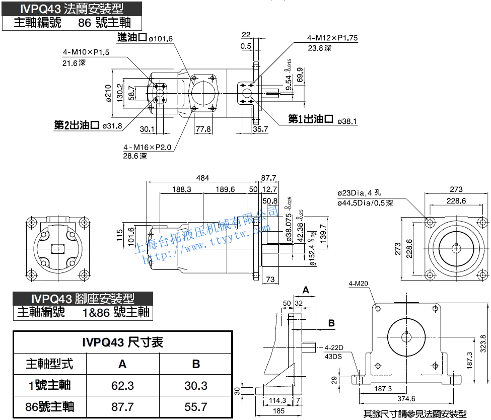 雙聯子母葉片定量泵IVPQ43(1號平鍵主軸)尺寸圖下載 雙聯子母葉片定量泵IVPQ43(86號平鍵主軸/1&86號主軸)尺寸圖下載