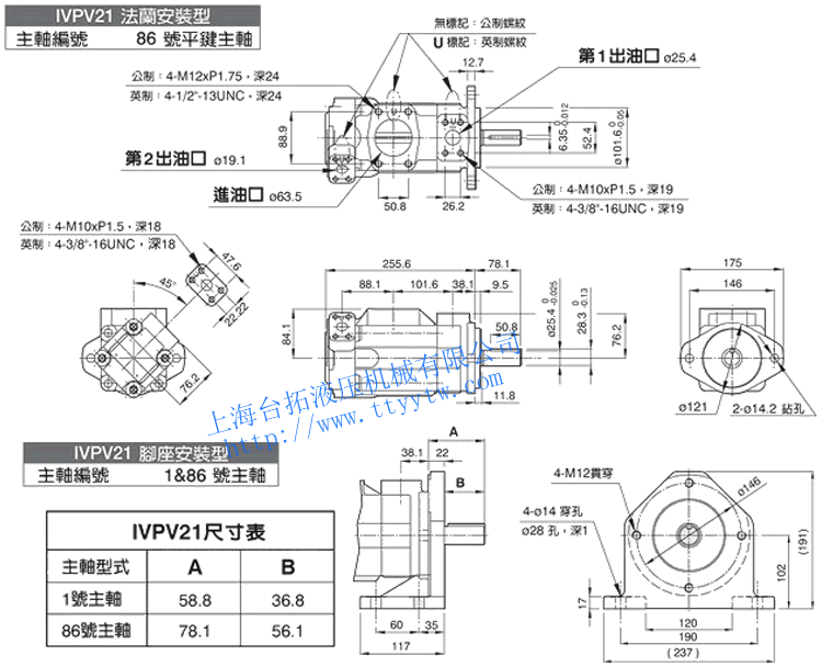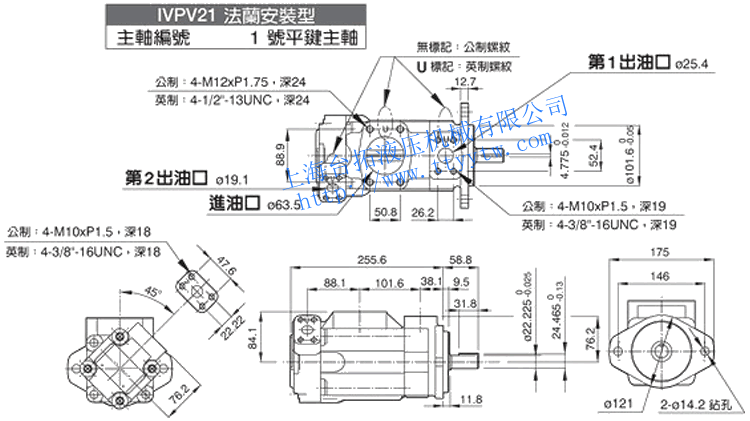 雙聯子母葉片定量泵IVPV21(1號平鍵主軸)尺寸圖下載 雙聯子母葉片定量泵IVPV21(86號平鍵主軸/1&86號主軸)尺寸圖下載