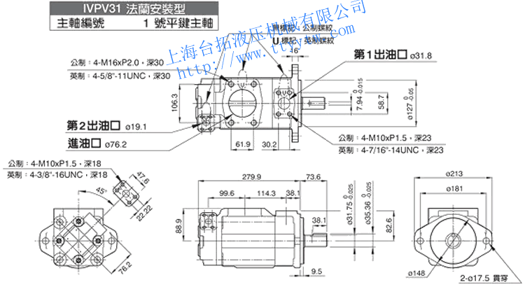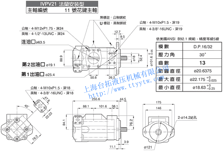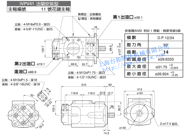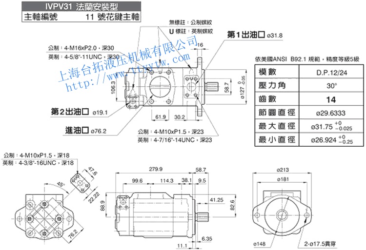 雙聯子母葉片定量泵IVPV21(11號花鍵主軸)尺寸圖下載 雙聯子母葉片定量泵IVPV31(1號平鍵主軸)尺寸圖下載