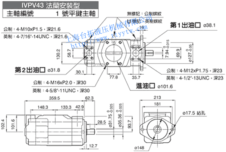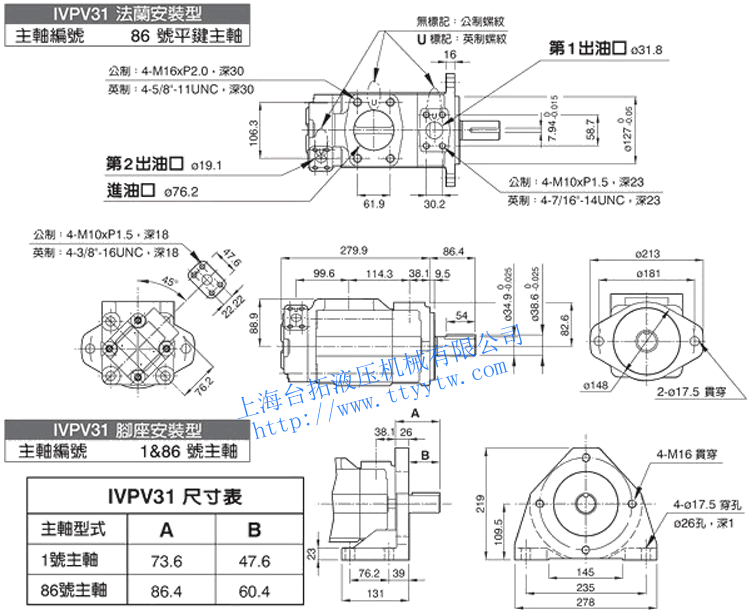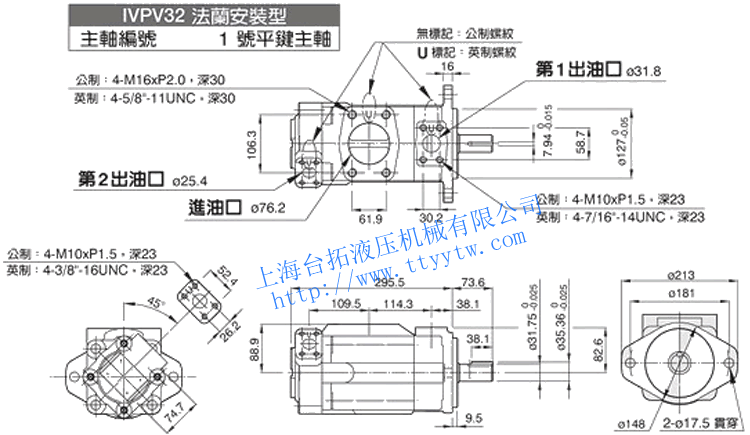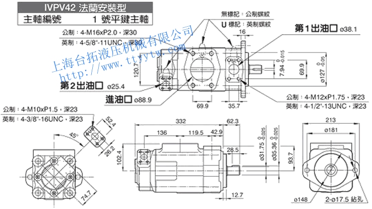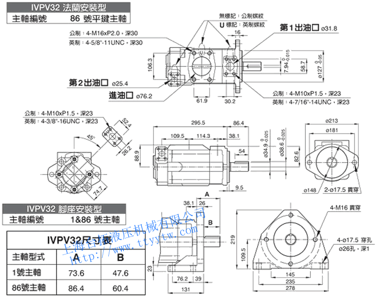 雙聯子母葉片定量泵IVPV32(1號平鍵主軸)尺寸圖下載 雙聯子母葉片定量泵IVPV32(86號平鍵主軸/1&86號主軸)尺寸圖下載