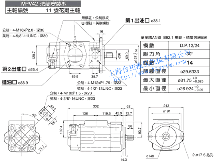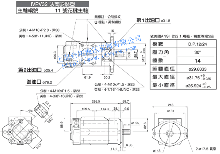 雙聯子母葉片定量泵IVPV31(86號平鍵主軸/1&86號主軸)尺寸圖下載 雙聯子母葉片定量泵IVPV31(11號花鍵主軸)尺寸圖下載
