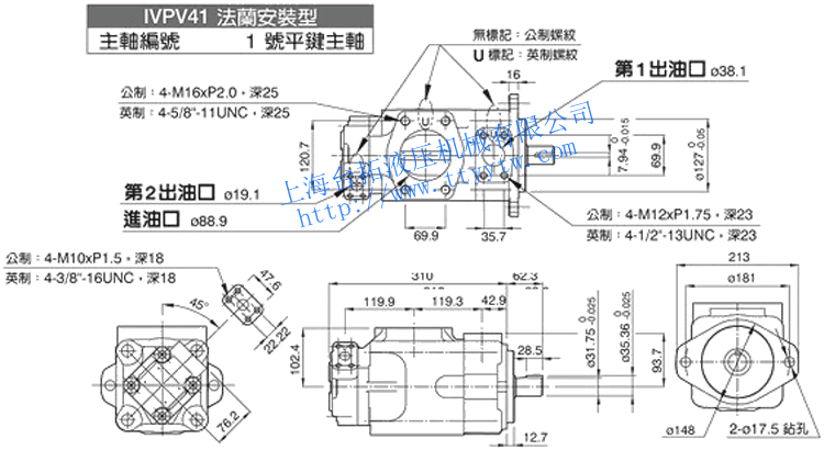 雙聯子母葉片定量泵IVPV32(11號花鍵主軸)尺寸圖下載 雙聯子母葉片定量泵IVPV41(1號平鍵主軸)尺寸圖下載