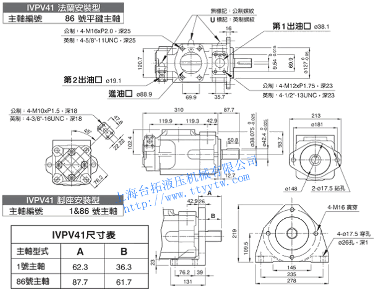 雙聯子母葉片定量泵IVPV42(1號平鍵主軸)尺寸圖下載 雙聯子母葉片定量泵IVPV42(86號平鍵主軸/1&86號主軸)尺寸圖下載