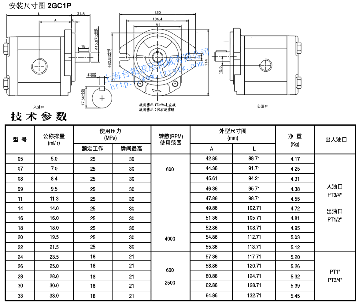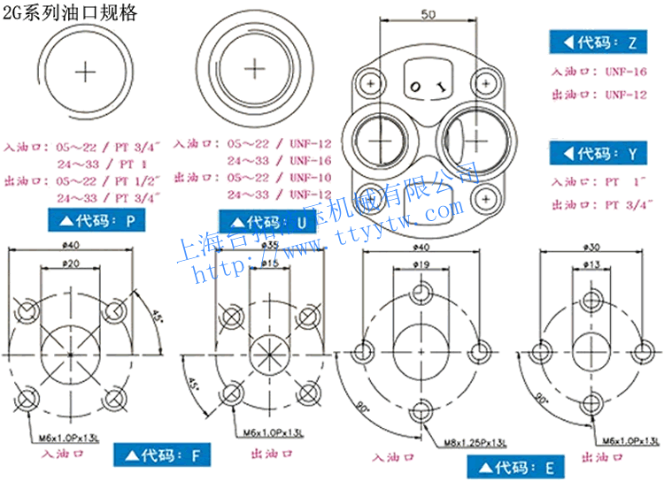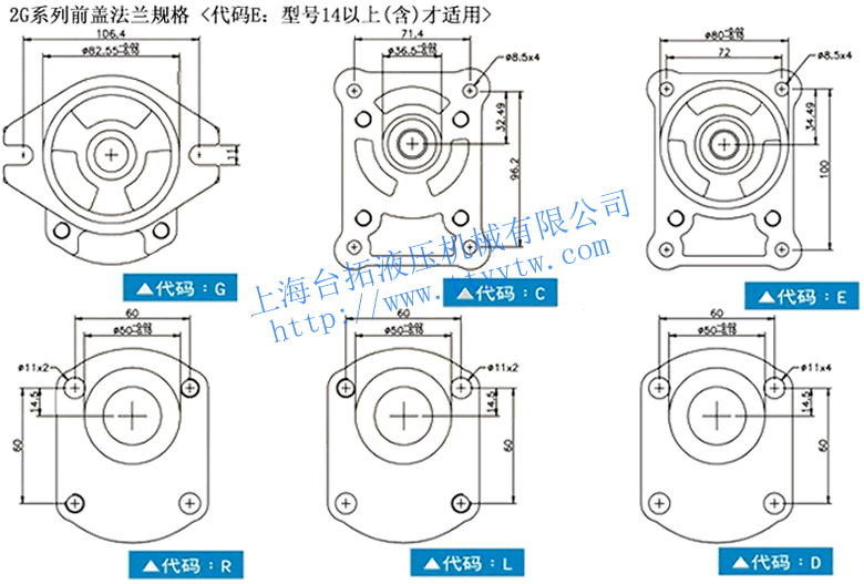 備注:1、R表示右轉,面向軸伸順時針;L表示左轉,面向軸伸逆時針。2、假設您所要的前泵排量是16.0ml/rev,旋向是右旋,正確的訂購型號:2GG1P16R。