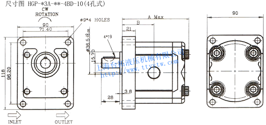 4BD:DIN4孔式10 定量齒輪泵HGP-3A系列規格表
