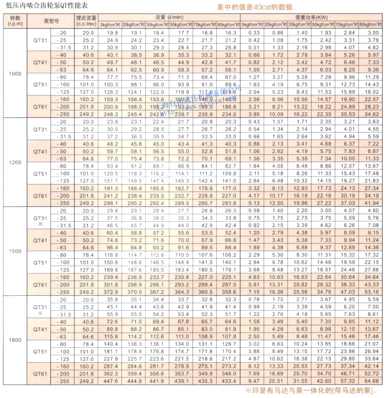 低壓內嚙合齒輪泵QT性能表