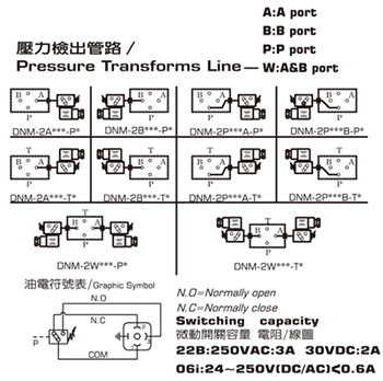 壓力繼電器DNM壓力直讀式, 疊加式,負(fù)載:5A-125,250VAC,LOAD:5A,30VDC,0.15A,125VDC。