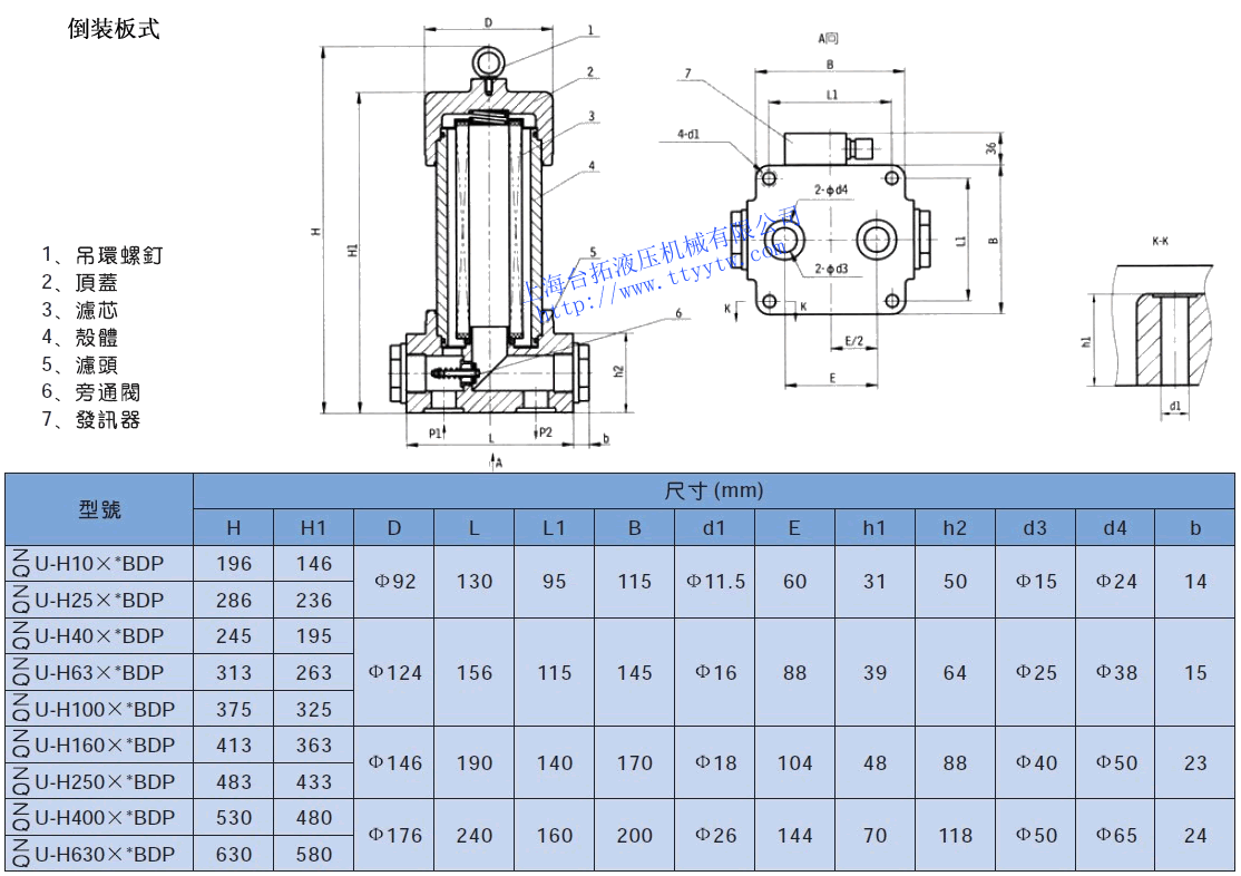220V/50W3.6 HDX-10×*# 管式 QU-H10×*p 10 15 0.08 3.6 HDX-10×*# ZU-H25×*P 25 15 0.08 5.0 HDX-25×*# QU-H25×*p 25 15 0.08 5.0 HDX-25×*# ZU-H40×*P 40 20 0.1 8.0 HDX-40×*# QU-H40×*p 40 20 0.1 8.0 HDX-40×*# ZU-H63×*P 63 20 0.1 9.8 HDX-63×*# QU-H63×*p 63 20 0.1 9.8 HDX-63×*# ZU-H100×*P 100 25 0.1 12.0 HDX-100×*# QU-H100×*p 100 25 0.1 12.0 HDX-100×*# ZU-H160×*P 160 32 0.15 18.2 HDX-160×*# QU-H160×*p 160 32 0.15 18.2 HDX-160×*# ZU-H250×*FP 250 40 0.15 23.0 HDX-250×*# 法蘭式 QU-H250×*Fp 250 40 0.15 23.0 HDX-250×*# ZU-H400×*FP 400 50 0.2 33.8 HDX-400×*# QU-H400×*Fp 400 50 0.2 33.8 HDX-400×*# ZU-H630×*FP 630 53 0.2 42.0 HDX-630×*# QU-H630×*Fp 630 53 0.2 42.0 HDX-630×*# ZU-H800×*FP 800 53 0.2 42.0 HDX-800×*# QU-H800×*Fp 800 53 0.2 42.0 HDX-800×*# ZU-H10×*BP 10 15 0.08 5.7 HBX-10×*# 板式 QU-H10×*BP 10 15 0.08 5.7 HBX-10×*# ZU-H25×*BP 25 15 0.08 7.0 HBX-25×*# QU-H25×*BP 25 15 0.08 7.0 HBX-25×*# ZU-H40×*BP 40 20 0.1 11.5 HBX-40×*# QU-H40×*BP 40 20 0.1 11.5 HBX-40×*# ZU-H63×*BP 63 20 0.1 13.2 HBX-63×*# QU-H63×*BP 63 20 0.1 13.2 HBX-63×*# ZU-H100×*BP 100 25 0.1 15.0 HBX-100×*# QU-H100×*BP 100 25 0.1 15.0 HBX-100×*# ZU-H160×*BP 160 32 0.15 21.4 HBX-160×*# QU-H160×*BP 160 32 0.15 21.4 HBX-160×*# ZU-H250×*BP 250 40 0.15 25.7 HBX-250×*# QU-H250×*BP 250 40 0.15 25.7 HBX-250×*# ZU-H400×*BP 400 50 0.2 38.0 HBX-400×*# QU-H400×*BP 400 50 0.2 38.0 HBX-400×*# ZU-H630×*BP 630 50 0.2 42.3 HBX-630×*# QU-H630×*BP 630 50 0.2 42.3 HBX-630×*# ZU-H10×*DLP 10 15 0.08 8.5 HDX-10×*# 倒裝管式 QU-H10×*DLP 10 15 0.08 8.5 HDX-10×*# ZU-H25×*DLP 25 15 0.08 9.9 HDX-25×*# QU-H25×*DLP 25 15 0.08 9.9 HDX-25×*# ZU-H40×*DLP 40 20 0.1 16.4 HDX-40×*# QU-H40×*DLP 40 20 0.1 16.4 HDX-40×*# ZU-H63×*DLP 63 20 0.1 18.9 HDX-63×*# QU-H63×*DLP 63 20 0.1 18.9 HDX-63×*# ZU-H100×*DLP 100 25 0.1 22.5 HDX-100×*# QU-H100×*DLP 100 25 0.1 22.5 HDX-100×*# ZU-H160×*DLP 160 32 0.15 33.4 HDX-160×*# QU-H160×*DLP 160 32 0.15 33.4 HDX-160×*# ZU-H10×*DFP 10 15 0.08 8.6 HDX-10×*# 倒裝法蘭式 QU-H10×*DFP 10 15 0.08 8.6 HDX-10×*# ZU-H25×*DFP 25 15 0.08 10.0 HDX-25×*# QU-H25×*DFP 25 15 0.08 10.0 HDX-25×*# ZU-H40×*DFP 40 20 0.1 16.6 HDX-40×*# QU-H40×*DFP 40 20 0.1 16.6 HDX-40×*# ZU-H63×*DFP 63 20 0.1 19.2 HDX-63×*# QU-H63×*DFP 63 20 0.1 19.2 HDX-63×*# ZU-H100×*DFP 100 25 0.1 22.9 HDX-100×*# QU-H100×*DFP 100 25 0.1 22.9 HDX-100×*# ZU-H160×*DFP 160 32 0.15 34.0 HDX-160×*# QU-H160×*DFP 160 32 0.15 34.0 HDX-160×*# ZU-H250×*DFP 250 40 0.15 41.9 HDX-250×*# QU-H250×*DFP 250 40 0.15 41.9 HDX-250×*# ZU-H400×*DFP 400 50 0.2 57.6 HDX-400×*# QU-H400×*DFP 400 50 0.2 57.6 HDX-400×*# ZU-H630×*DFP 630 53 0.2 62.4 HDX-630×*# QU-H630×*DFP 630 53 0.2 62.4 HDX-630×*# ZU-H10×*DFAP 10 15 0.08 8.6 HDX-10×*# 倒裝法蘭式A型 QU-H10×*DFAP 10 15 0.08 8.6 HDX-10×*# ZU-H25×*DFAP 25 15 0.08 10.0 HDX-25×*# QU-H25×*DFAP 25 15 0.08 10.0 HDX-25×*# ZU-H40×*DFAP 40 20 0.1 16.6 HDX-40×*# QU-H40×*DFAP 40 20 0.1 16.6 HDX-40×*# ZU-H63×*DFAP 63 20 0.1 19.2 HDX-63×*# QU-H63×*DFAP 63 20 0.1 19.2 HDX-63×*# ZU-H100×*DFAP 100 25 0.1 22.9 HDX-100×*# QU-H100×*DFAP 100 25 0.1 22.9 HDX-100×*# ZU-H160×*DFAP 160 32 0.15 34.0 HDX-160×*# QU-H160×*DFAP 160 32 0.15 34.0 HDX-160×*# ZU-H250×*DFAP 250 40 0.15 41.9 HDX-250×*# QU-H250×*DFAP 250 40 0.15 41.9 HDX-250×*# ZU-H400×*DFAP 400 50 0.2 57.6 HDX-400×*# QU-H400×*DFAP 400 50 0.2 57.6 HDX-400×*# ZU-H630×*DFAP 630 53 0.2 62.4 HDX-630×*# QU-H630×*DFAP 630 53 0.2 62.4 HDX-630×*# ZU-H10×*DFBP 10 15 0.08 8.6 HDX-10×*# 倒裝法蘭式B型 QU-H10×*DFBP 10 15 0.08 8.6 HDX-10×*# ZU-H25×*DFBP 25 15 0.08 10.0 HDX-25×*# QU-H25×*DFBP 25 15 0.08 10.0 HDX-25×*# ZU-H40×*DFBP 40 20 0.1 16.6 HDX-40×*# QU-H40×*DFBP 40 20 0.1 16.6 HDX-40×*# ZU-H63×*DFBP 63 20 0.1 19.2 HDX-63×*# QU-H63×*DFBP 63 20 0.1 19.2 HDX-63×*# ZU-H100×*DFBP 100 25 0.1 22.9 HDX-100×*# QU-H100×*DFBP 100 25 0.1 22.9 HDX-100×*# ZU-H160×*DFBP 160 32 0.15 34.0 HDX-160×*# QU-H160×*DFBP 160 32 0.15 34.0 HDX-160×*# ZU-H250×*DFBP 250 40 0.15 41.9 HDX-250×*# QU-H250×*DFBP 250 40 0.15 41.9 HDX-250×*# ZU-H400×*DFBP 400 50 0.2 57.6 HDX-400×*# QU-H400×*DFBP 400 50 0.2 57.6 HDX-400×*# ZU-H630×*DFBP 630 53 0.2 62.4 HDX-630×*# QU-H630×*DFBP 630 53 0.2 62.4 HDX-630×*# ZU-H10×*BDP 10 15 0.08 8.4 HDX-10×*# 倒裝法蘭式 QU-H10×*BDP 10 15 0.08 8.4 HDX-10×*# ZU-H25×*BDP 25 15 0.08 9.8 HDX-25×*# QU-H25×*BDP 25 15 0.08 9.8 HDX-25×*# ZU-H40×*BDP 40 20 0.1 16.3 HDX-40×*# QU-H40×*BDP 40 20 0.1 16.3 HDX-40×*# ZU-H63×*BDP 63 20 0.1 18.9 HDX-63×*# QU-H63×*BDP 63 20 0.1 18.9 HDX-63×*# ZU-H100×*BDP 100 25 0.1 22.5 HDX-100×*# QU-H100×*BDP 100 25 0.1 22.5 HDX-100×*# ZU-H160×*BDP 160 32 0.15 33.6 HDX-160×*# QU-H160×*BDP 160 32 0.15 33.6 HDX-160×*# ZU-H250×*BDP 250 40 0.15 41.3 HDX-250×*# QU-H250×*BDP 250 40 0.15 41.3 HDX-250×*# ZU-H400×*BDP 400 50 0.2 57.0 HDX-400×*# QU-H400×*BDP 400 50 0.2 57.0 HDX-400×*# ZU-H630×*BDP 630 50 0.2 61.8 HDX-630×*# QU-H630×*BDP 630 50 0.2 61.8 HDX-630×*# 備注:*為過濾精度,#為過濾材料,若使用介質(zhì)為水-乙二醇,濾材為紙質(zhì),帶發(fā)訊器和旁通閥,則過濾器型號為:ZUI.BH-H63×*P,濾芯型號為HX.BH-63×*,濾材為化纖,帶發(fā)訊器,則過濾器型號為QU.BH-63×*Q,濾芯型號為HX.BH-63×*Q濾材為金屬鋼,帶發(fā)訊器,則過濾型號為:WU.BH-63×*P,濾芯型號為HX-63×*W。