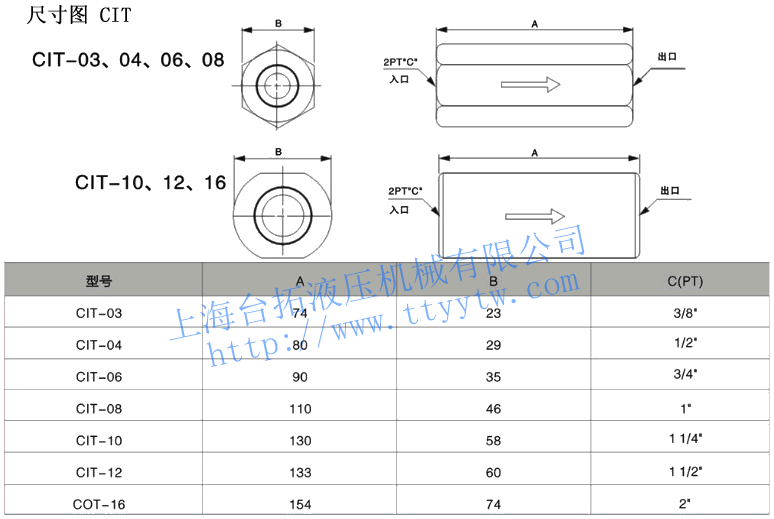 A2:0.35MPa單向閥CIT規(guī)格表