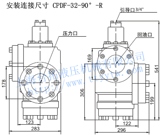 法蘭充液閥CPDF-32-90°-R安裝連接尺寸下載 法蘭充液閥CPDF-32-90°-L安裝連接尺寸下載