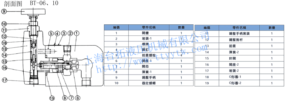 型號(hào) 最高使用壓力 MPa 壓力調(diào)整范圍 MPa 最大流量 ?/min 重量 KG BT-06 25 B:1~7