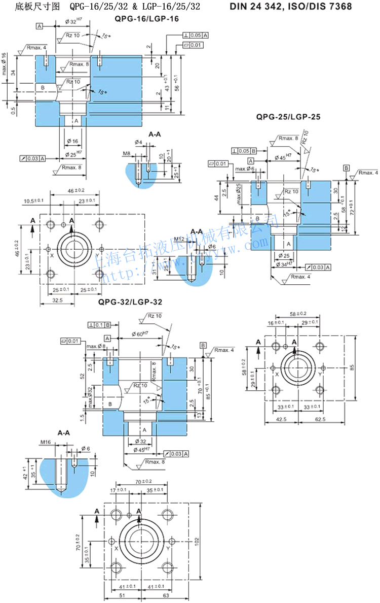 超高響應電液比例流量閥QPG16/25/32&LGP16/25/32底板尺寸圖下載 超高響應電液比例流量閥QPG40/50&LGP40/50底板尺寸圖下載