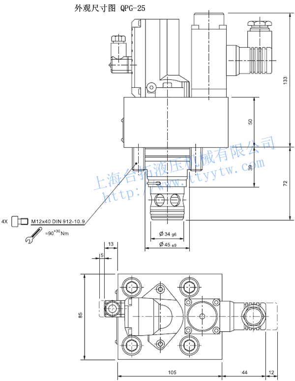超高響應電液比例流量閥QPG-32外觀尺寸圖下載 超高響應電液比例流量閥QPG-40外觀尺寸圖下載