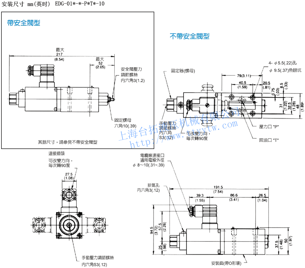 -:無安全閥型(標準型)電液比例先導溢流閥EDG性能規格表