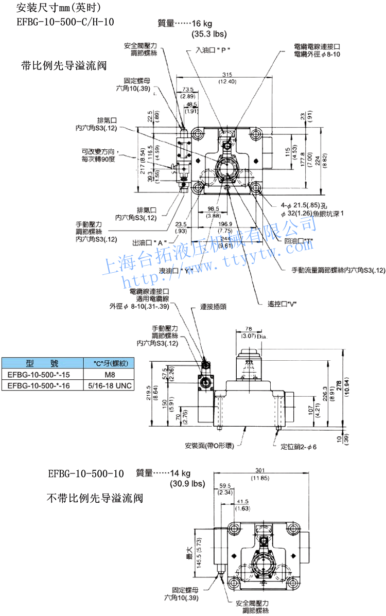 H:1.4~21電液比例溢流調(diào)速閥EFBG性能規(guī)格表