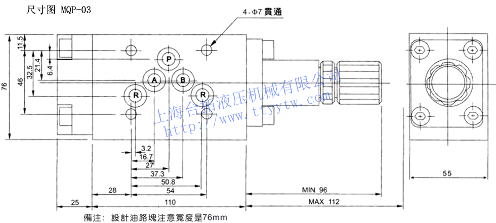 MQ P -02 -B -P 系列號碼 控制油路 規格 壓力調整范圍 控制方式 疊加式順序閥 P:P油路 02:1/4"