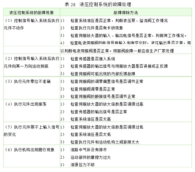 9)液壓控制系統(tǒng)正式使用前應(yīng)進(jìn)行系統(tǒng)調(diào)試,可按以下幾點(diǎn)進(jìn)行:a)零位調(diào)整,包括伺服閥的調(diào)零及伺服放大器的調(diào)零,為了調(diào)整系統(tǒng)零位,有時(shí)加入偏置電壓;b)系統(tǒng)靜態(tài)測(cè)試,測(cè)定被控參數(shù)與指令信號(hào)的靜態(tài)關(guān)系,調(diào)整合理的放大倍數(shù),通常放大倍數(shù)愈大靜態(tài)誤差愈小,控制精度愈高,但容易造成系統(tǒng)不穩(wěn)定;c)系統(tǒng)的動(dòng)態(tài)測(cè)試,采用動(dòng)態(tài)測(cè)試儀器,通常需測(cè)出系統(tǒng)穩(wěn)定性,頻率響應(yīng)及誤差,確定是否能滿足設(shè)計(jì)要求。系統(tǒng)動(dòng)、靜態(tài)測(cè)試記錄可作為日后系統(tǒng)運(yùn)行狀況評(píng)估的根據(jù)。 10)液壓控制系統(tǒng)投入運(yùn)行后應(yīng)定期檢查以下記錄數(shù)據(jù):油溫,油壓,油液污染程度;運(yùn)行穩(wěn)定情況,執(zhí)行機(jī)構(gòu)的零偏情況,執(zhí)行元件對(duì)信號(hào)的跟蹤情況。