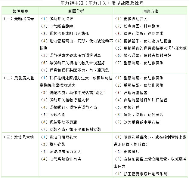壓力繼電器(壓力開(kāi)關(guān))常見(jiàn)故障及處理