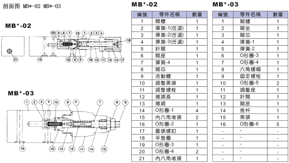 系列號碼 控制油路 規格 壓力調整范圍 把手型式