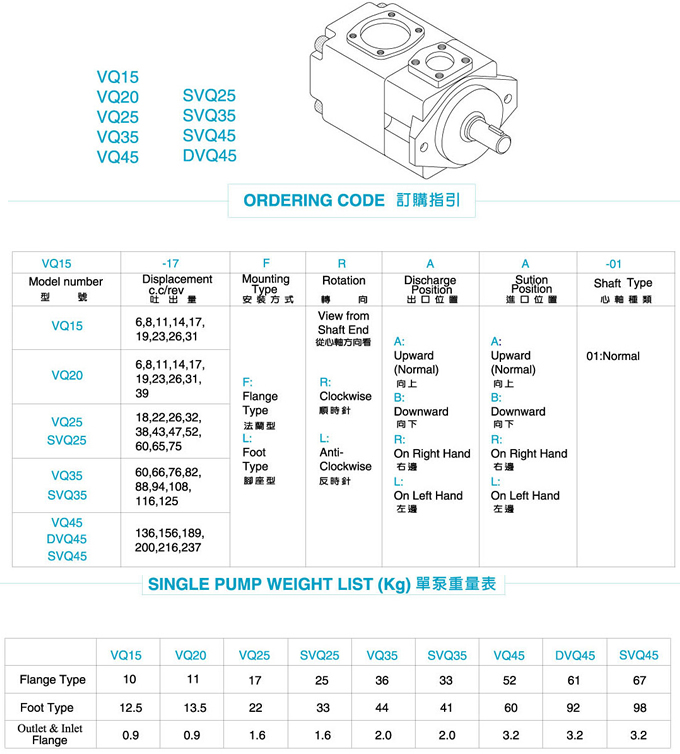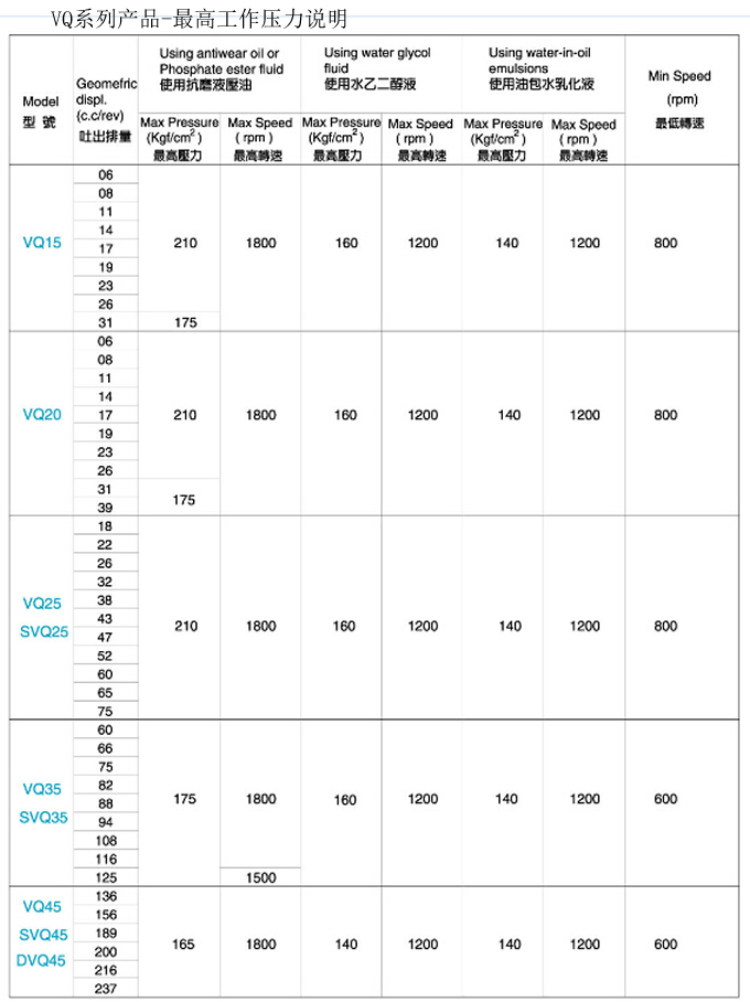 定量高壓?jiǎn)伪肰Q15~VQ45規(guī)格表