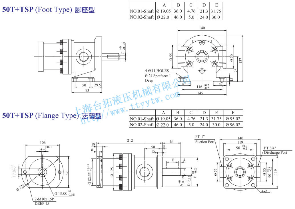 定量高低壓組合泵50T+TSP腳座型法蘭型尺寸圖下載 定量高低壓組合泵150T+TSP腳座型法蘭型尺寸圖下載