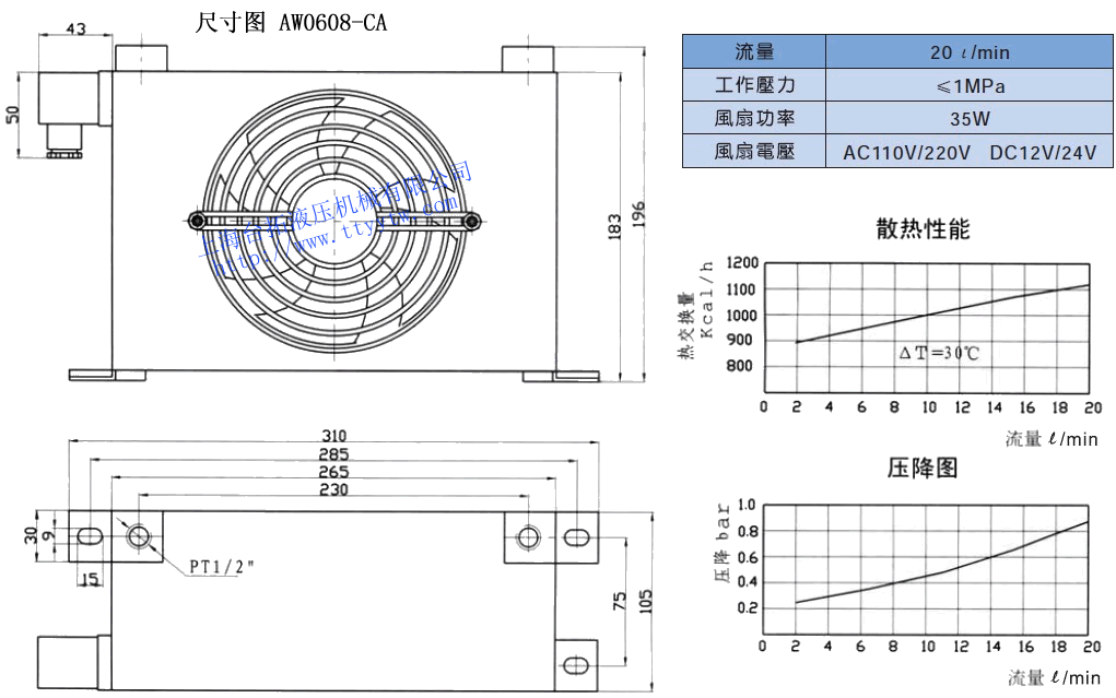 風冷機AW0608L-CA尺寸圖下載 風冷機AW0608W-CA尺寸圖下載