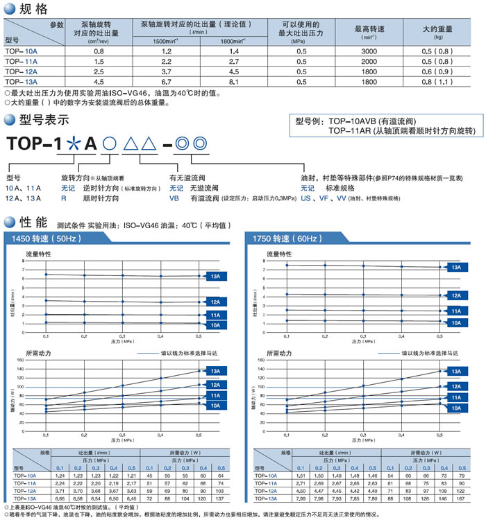 TOP-1A泵單體是一款小型、輕量、小吐出量(0.8~4.5cm3/rev)、低吐出壓油泵。可安裝內部溢流閥,用于輸送操作油、潤滑油,液體溫度:-5~80℃(有高溫用特殊部件)