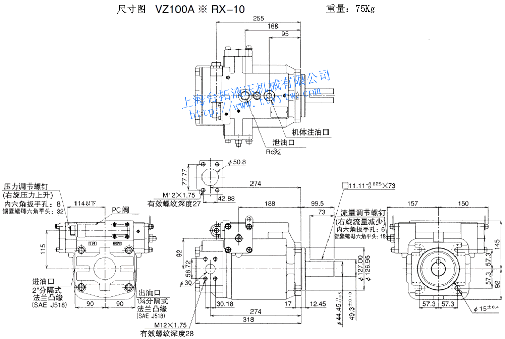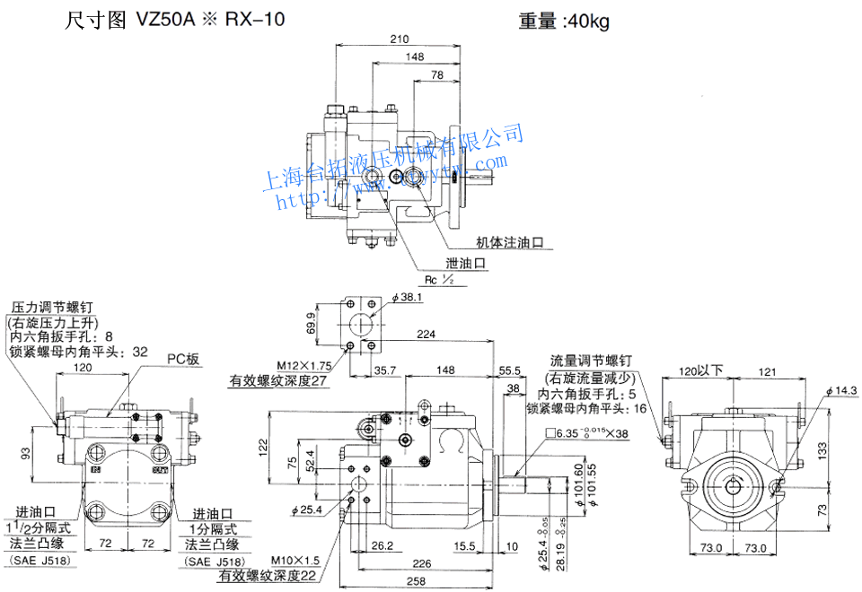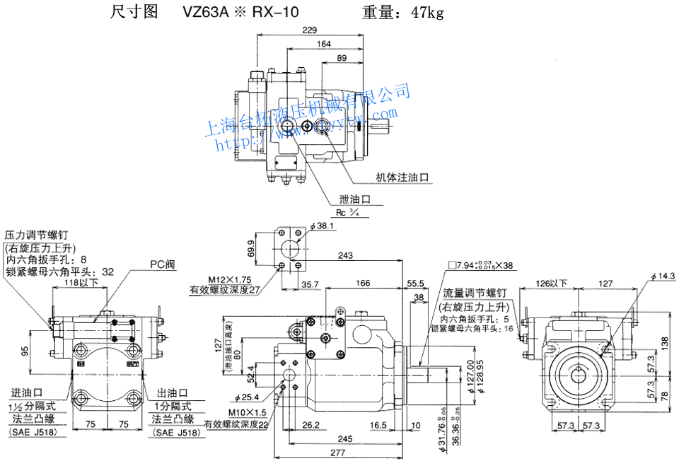 變量柱塞泵VZ50A*RX-10尺寸圖下載  變量柱塞泵VZ50A4RX-10RC尺寸圖下載