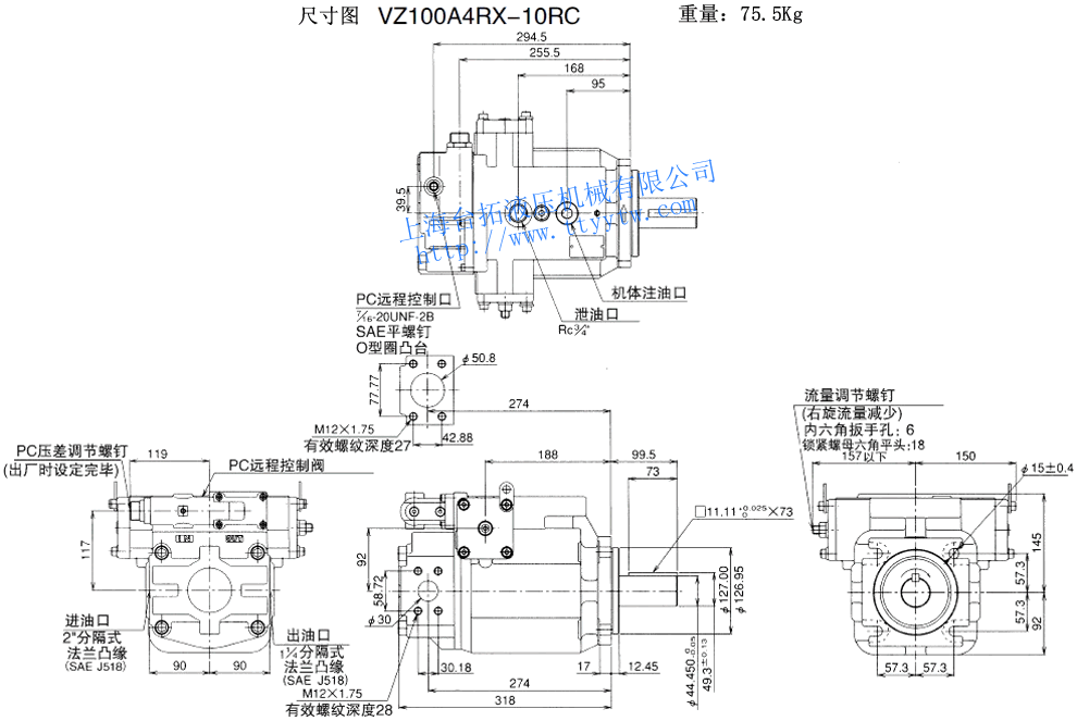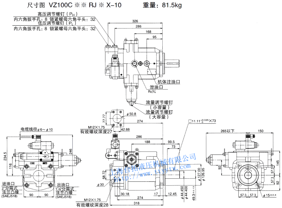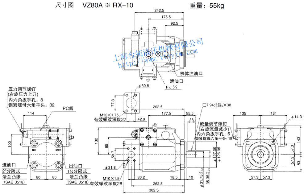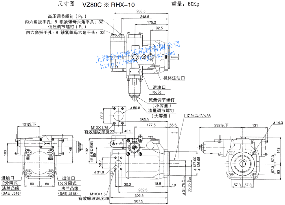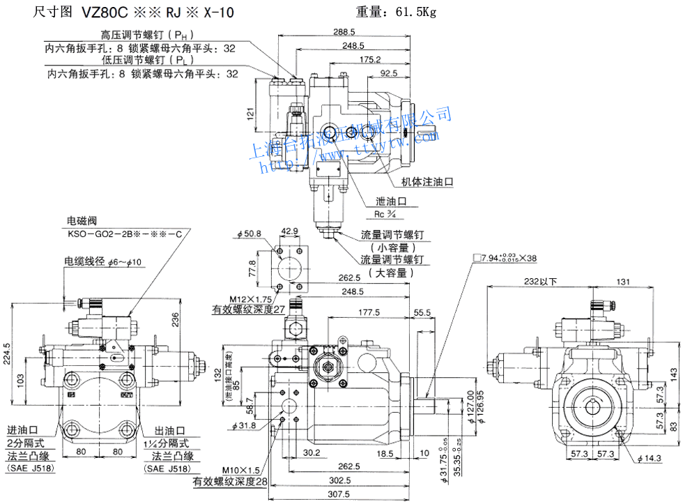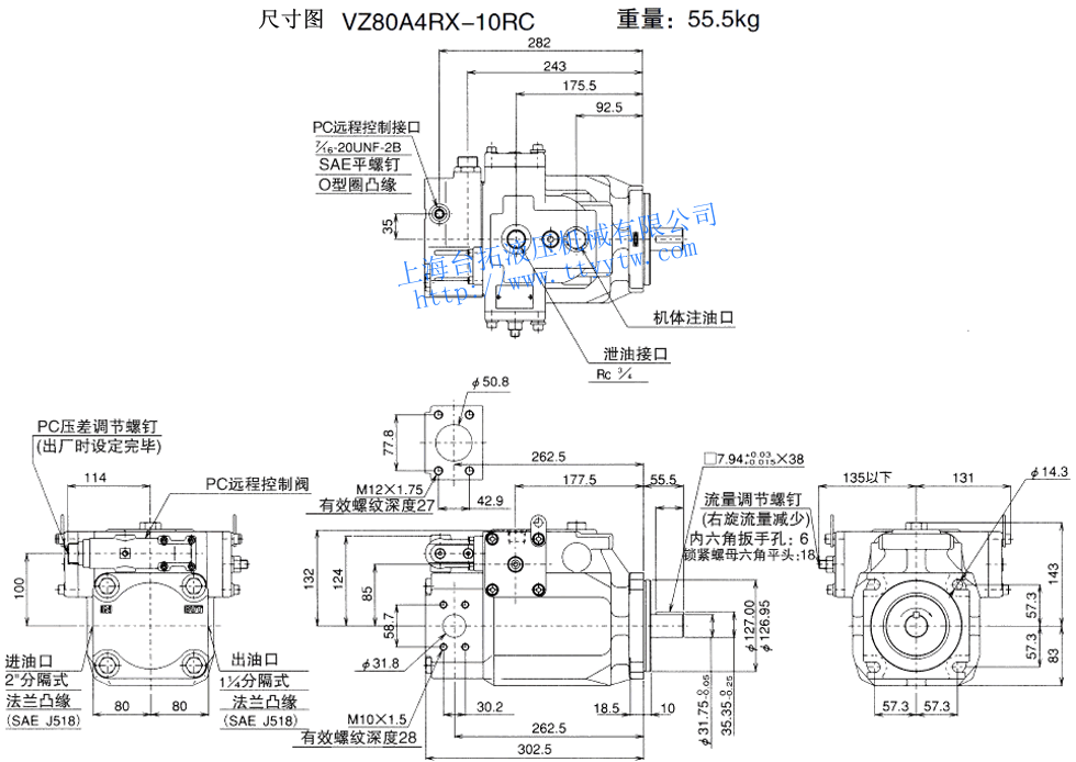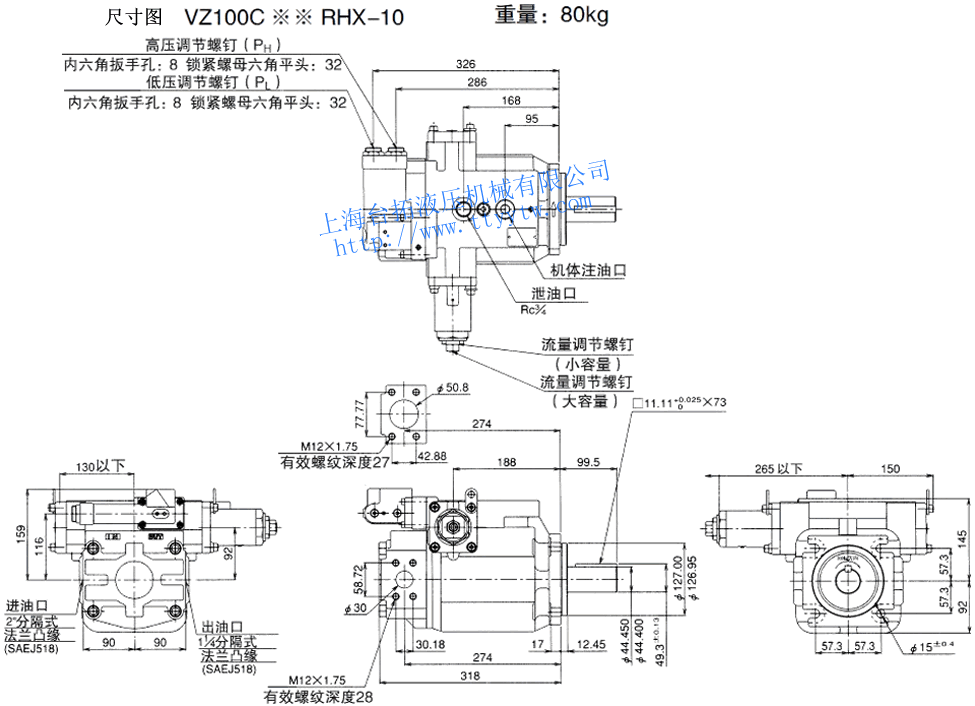 變量柱塞泵VZ80C*RHX-10尺寸圖下載  變量柱塞泵VZ80C**RJ*X-10尺寸圖下載